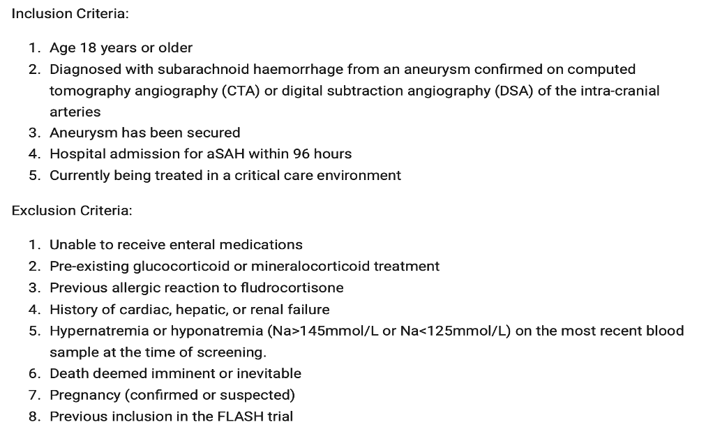 Fludrocortisone Administration in Aneurysmal Subarachnoid Haemorrhage (FLASH)